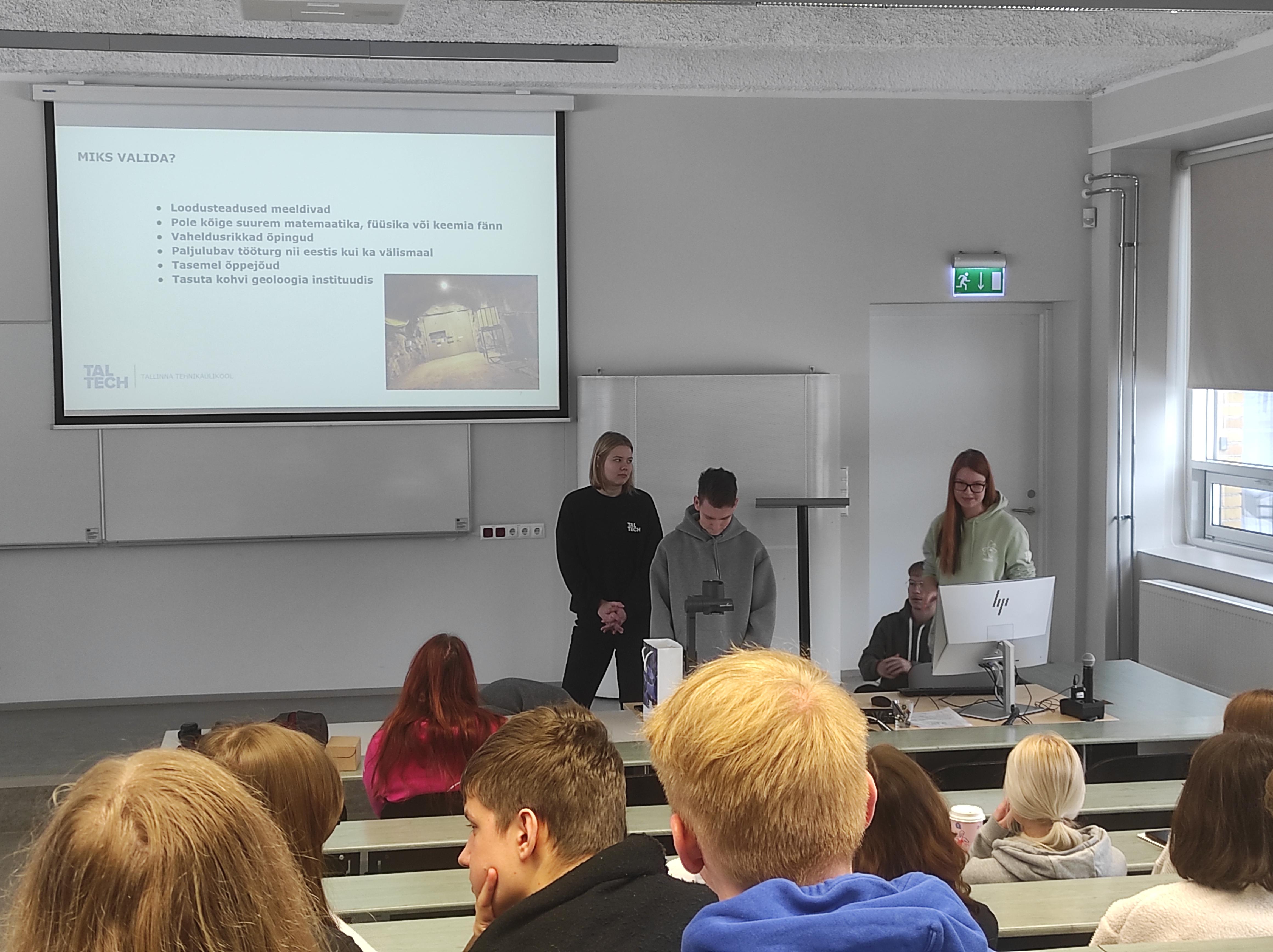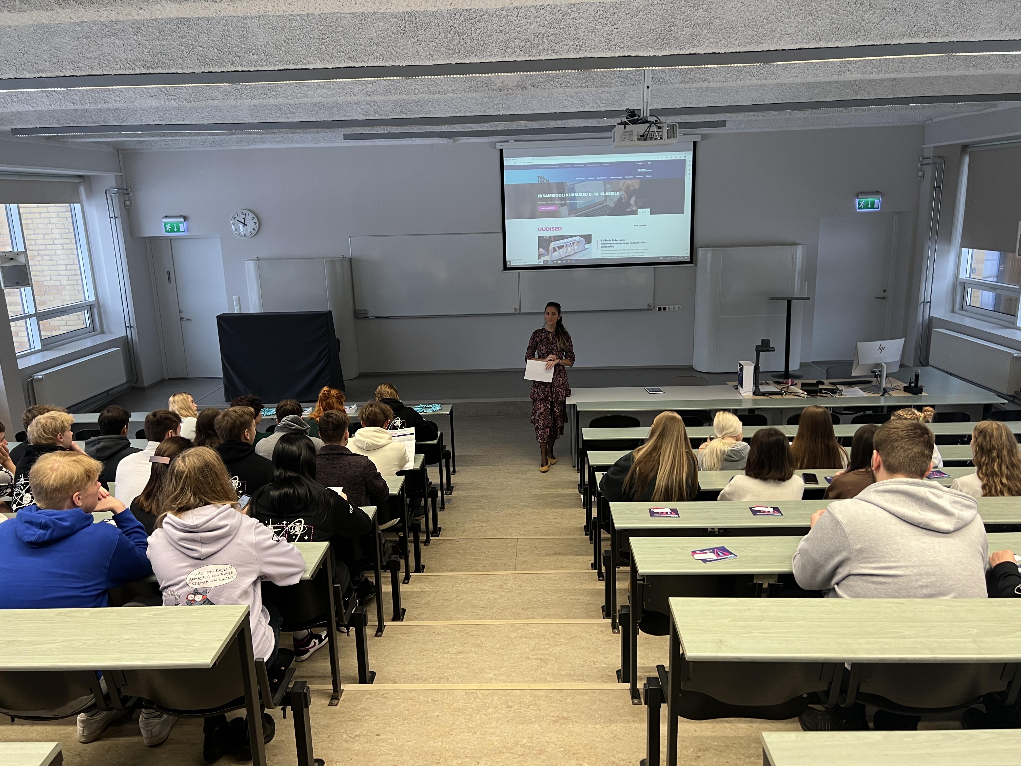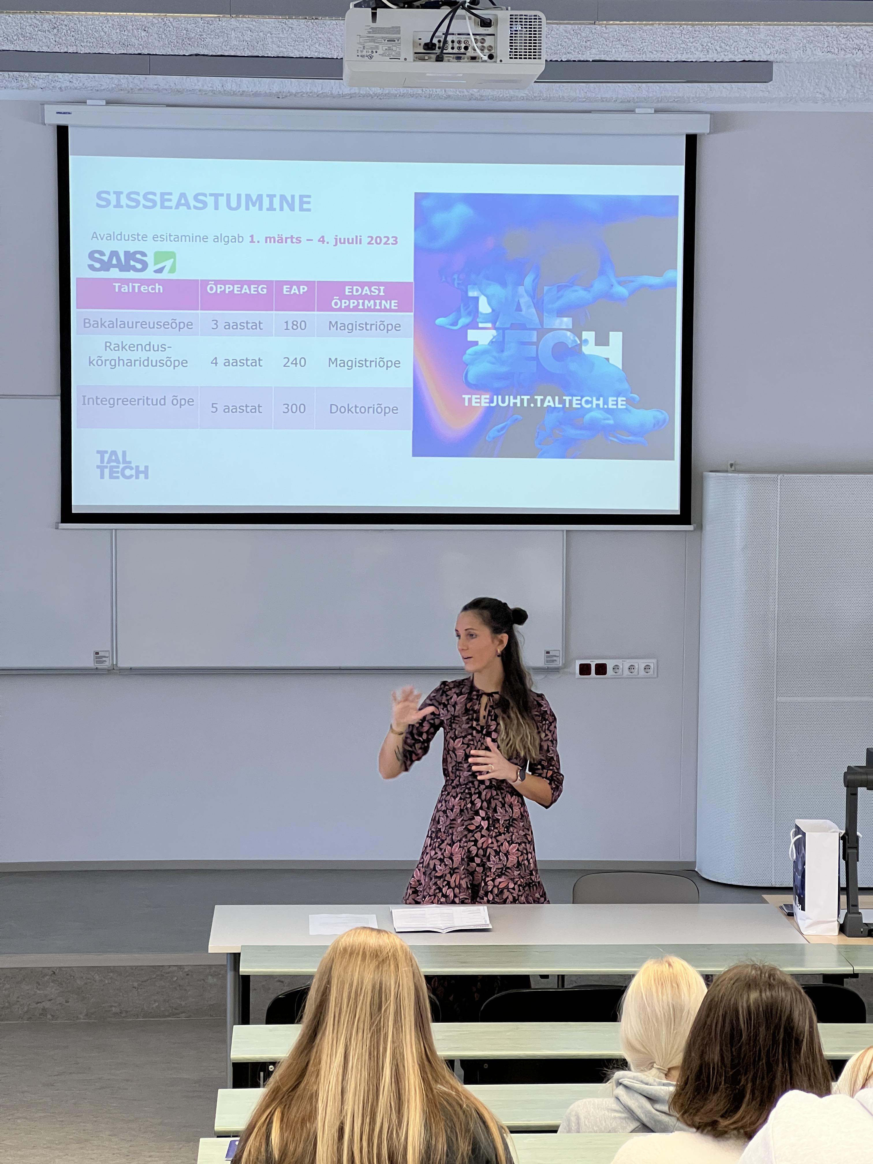 TalTechis koordineeris meie külaskäiku vastuvõtuturunduse spetsialist Keiu Org, kes andis ka põhjaliku ülevaate ülikoolist, õppimisvõimalustest, sisseastumistingimustest ja tudengielust.